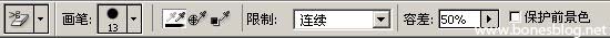 先来看看工具选项栏中的状况,下图是软件的默认状态下背景橡皮擦的工具栏。