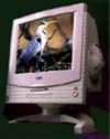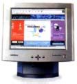 卡相连。以前,大家多用14英寸(屏幕对角线的长度,1英寸=2.56cm)的球面显示器,但现在15英寸平面直角的显示器已逐渐流行起来了,这种显示器的屏幕几乎在一个平面上,不象以前的显示器那样中间凸起,画面效果有了很大的提高。