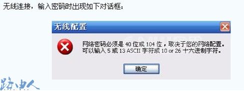 一、无线连接时提示网络密码必须是40位或者104位
