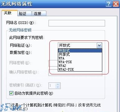 无线网络属性中选择关联,在网络验证中查看一下您的系统是否支持路由器中设定的加密方式。如图示