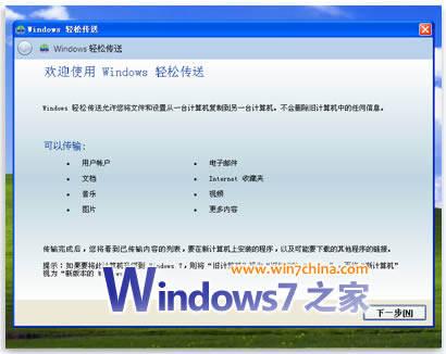 上图:Windows 轻松传送帮助简化了文件和设置的移动