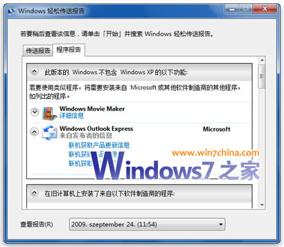 • Windows 轻松传送并不移动程序,仅迁移文件和设置。在 Windows7 安装完成之后,您需要手动重新安装程序。Windows 轻松传送将提供您当前在 Windows XP 中使用的程序列表。