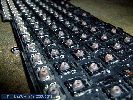前些日子的某天晚上,不小心把一大杯桔子汁碰倒,小银男的键盘里被灌了一些。老婆闻讯赶来帮我把里面的水迅速倒出来。用了用,还比较OK。庆幸了没多久,可能里面的水被烤干了,桔子汁变得越来越粘,敲起键盘很是难受。于是决定拆开键盘,大清洗一下。