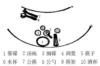 其中每人所用的酒杯数目和种类应与上酒的品种数相吻合。餐巾应叠成方形平放在餐碟上或叠成花形插在水杯中。公筷、公勺应在主人面前放置一套。酱油、醋、烟缸和牙签等也应在餐台上酌情放置。有时宴请外国宾客时,除放置筷子外,还应摆上刀叉,一桌数份。