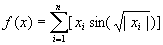 函数f(x)有相当多的极小点,全局极小点是 =-420.97 =1,2,…, ,最优值为-837.97;次最优点为 ={( , ,…, ) =-420.97, , =302.52} =1,2,…, ,次优值-719.53。变量个数n=2时函数f(x) 特性如图1示。程序编制和运行环境采用Fortran Power Station 4.0,随机数由内部随机函数产生,在奔腾133微机上运行。