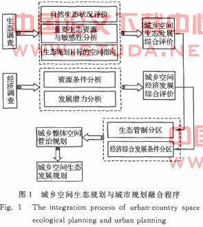 从前面可以看出,生态规划在编制的过程中,其灵魂已经融人了区域、城市规划,与经济、建设空间是相互反馈和协调的,在最后把规划成果(也是表现形式)融人总体规划中,完善总体规划成果的内容,便于城市管理者执行(图1).